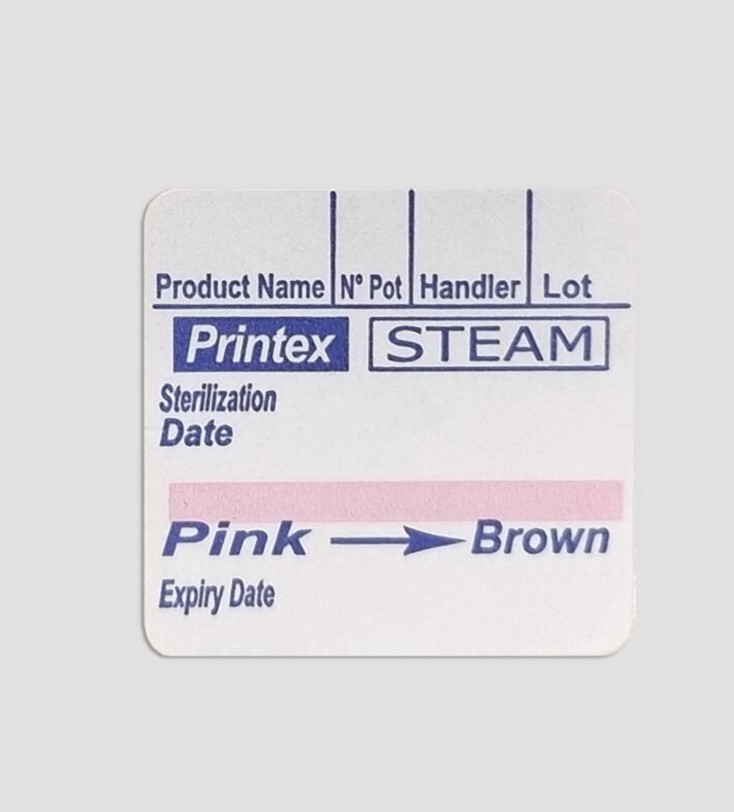 Etichette Medicali mm 29×28 Printex 3 per la tracciabilità e archiviazione dati relativi alla sterilizzazione dello strumentario chirurgico e/o dei dispositivi medici, con indicatore di processo per autoclave a vapore, 3 linee di stampa, doppio adesivo – 1.500 etichette